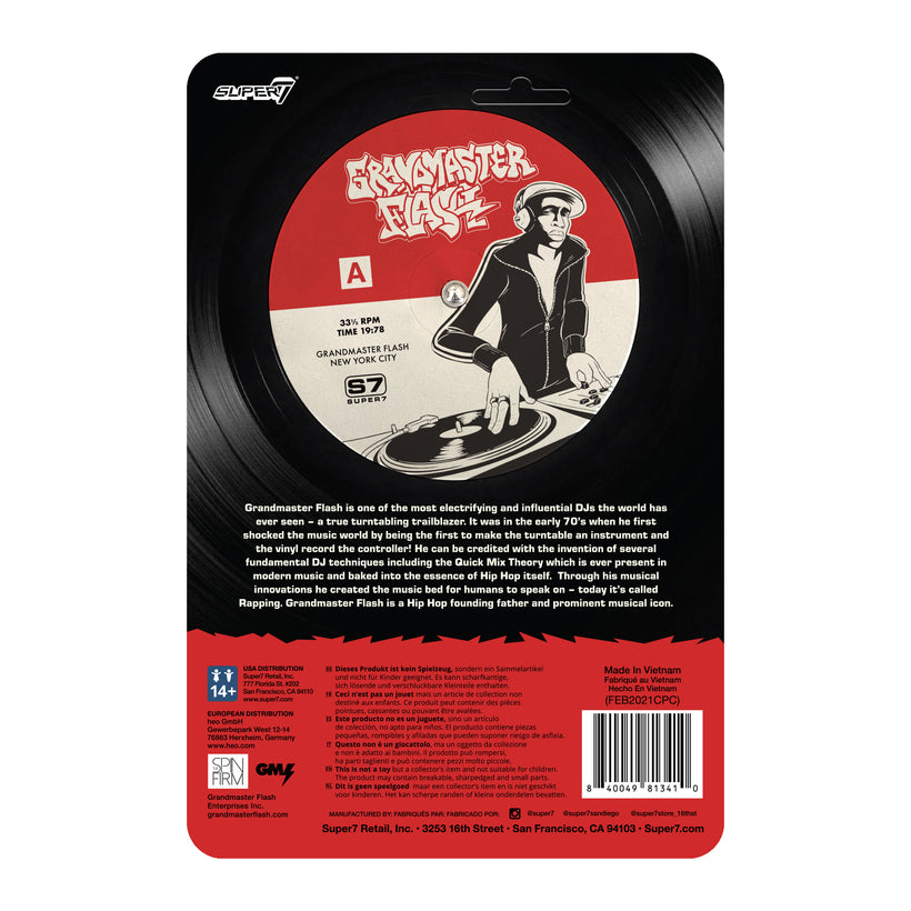 Make some noise for this Super7 collab with the legendary hip hop pioneer, Rock & Roll Hall of Famer, Polar Music Prize and Grammy Lifetime Achievement Award winner, Grandmaster Flash! The 3.75” articulated ReAction figure of Grandmaster Flash features the groundbreaking DJ in his signature jacket and comes with a turntable accessory. Add the Grandmaster Flash ReAction figure to your lineup of Hip-hop icons!