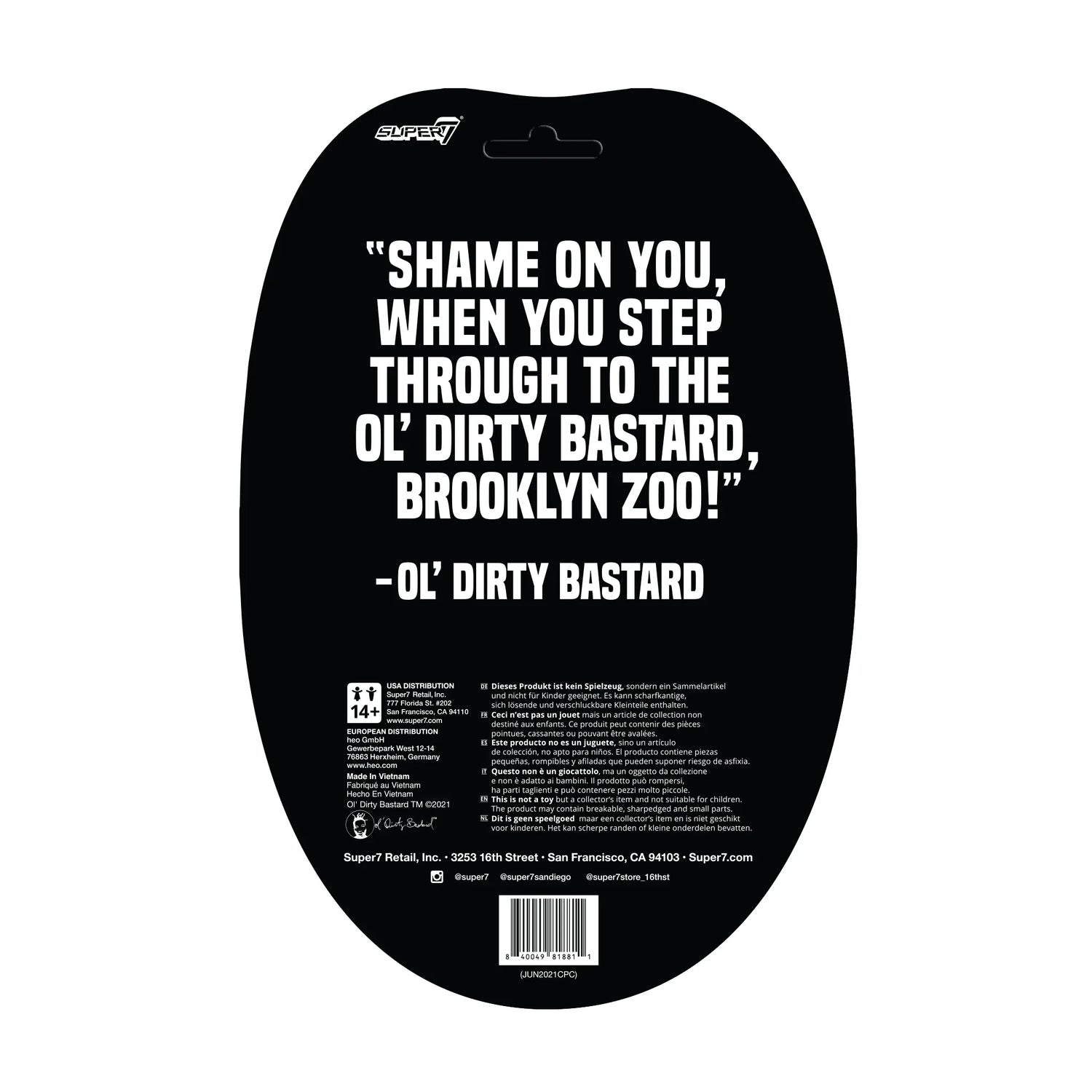 He’s the one man army that keeps MC’s lookin’ out! This 3.75” articulated ODB ReAction Figure pays homage to the Brooklyn Zoo music video, featuring his tan jacket, sunglasses (with missing lens), and gold grillz, and includes a microphone accessory. Packaged on a special mouth-shaped die-cut cardback with holographic and metallic foil hits, the ODB “Brooklyn Zoo” ReAction Figure deserves a spot in your collection of Hip-Hop legends!