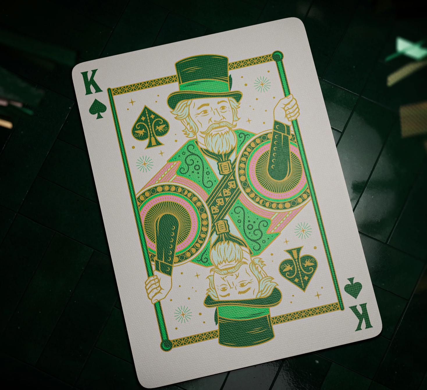 Discover this must-have deck of cards for fans of the untold story of the witches of Oz! Featuring a regal combination of green and gold foil.