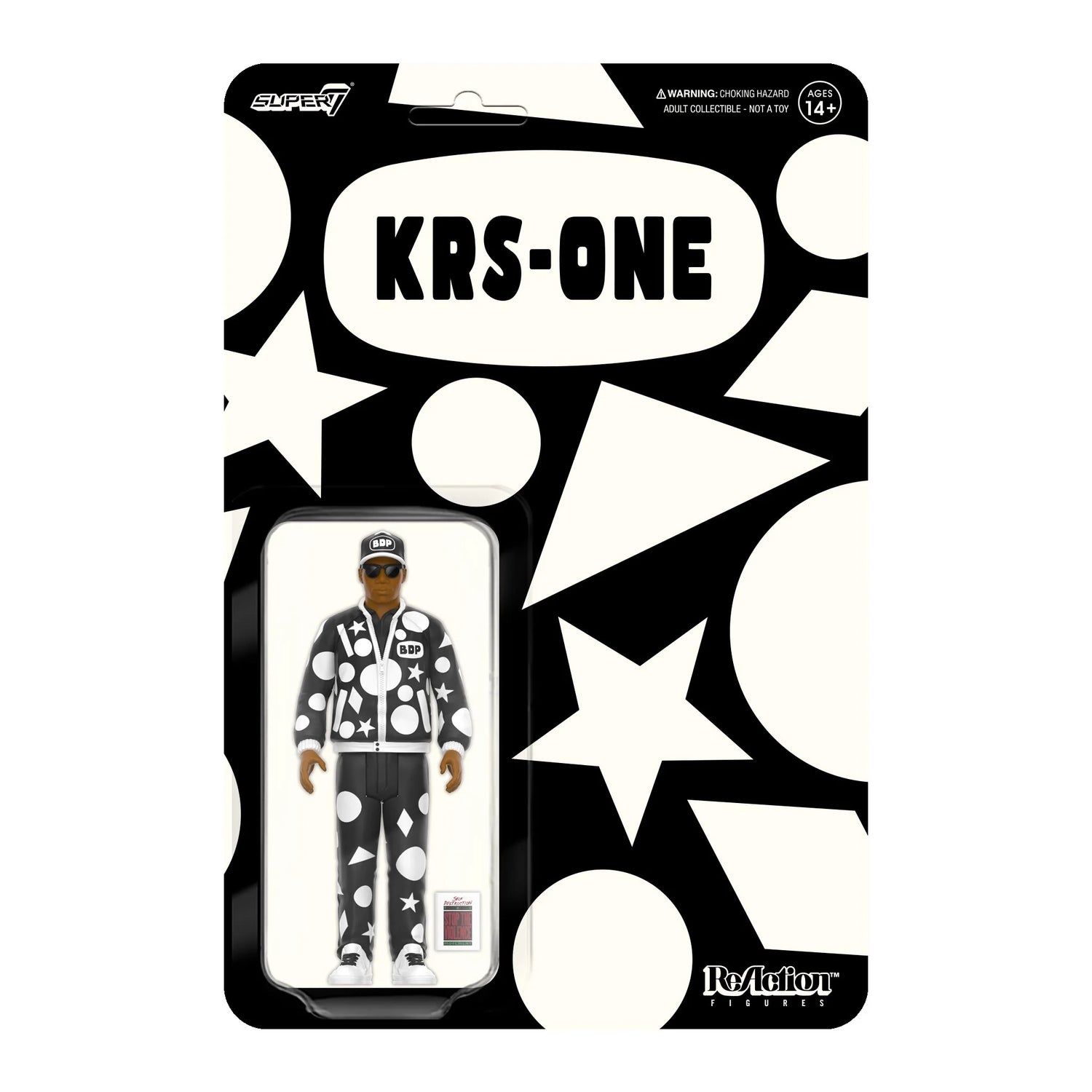 Troubled by the apparent rise of violence in the hip-hop community, KRS-One founded the Stop the Violence Movement in an effort to rally fellow artists to the cause and spread awareness about the growing problem. The latest 3.75” scale, articulated KRS-One ReAction Figure is inspired by his appearance in the 1988 “Self Destruction” music video and features the emcee in a black and white BDP hat and jacket with geometric pattern, and includes a Stop the Violence Movement book accessory. Add this iconic KRS-One Self Destruction figure to your hip hop collection today!