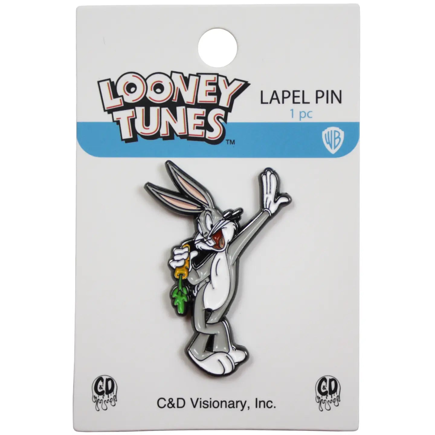 This Bugs Bunny Eating A Carrot enamel pin measures 1 x 1.5 inches. Comes on a full color and retail ready display card.